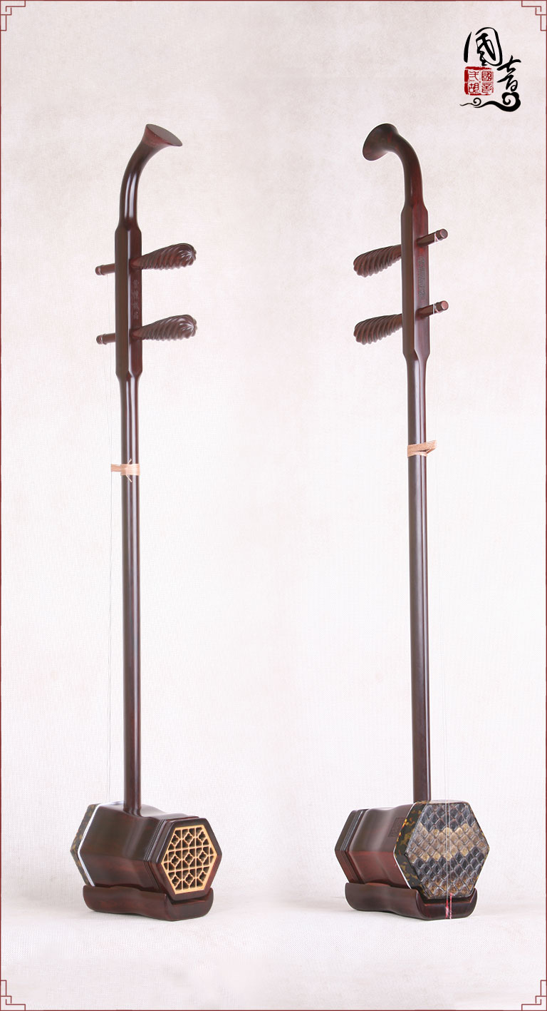 产品说明紫檀的材质致密坚硬,鬃眼细密,所制二胡发音亮丽。国音紫檀双声道精品二胡,经鉴定琴筒内的声音经过两次循环迂回传出,改变传统二胡直接发声的方式,因此琴皮与琴身共振协调,上下把位通透,内外弦平衡,无狼音、杂音,低音浑厚浓郁,高音清晰明亮,共鸣增大,音量增大,音色浑厚、圆润、优美,穿透力大,立体感强,演奏手感好,南北风格兼容,极大提高二胡的音质和丰富了音色。