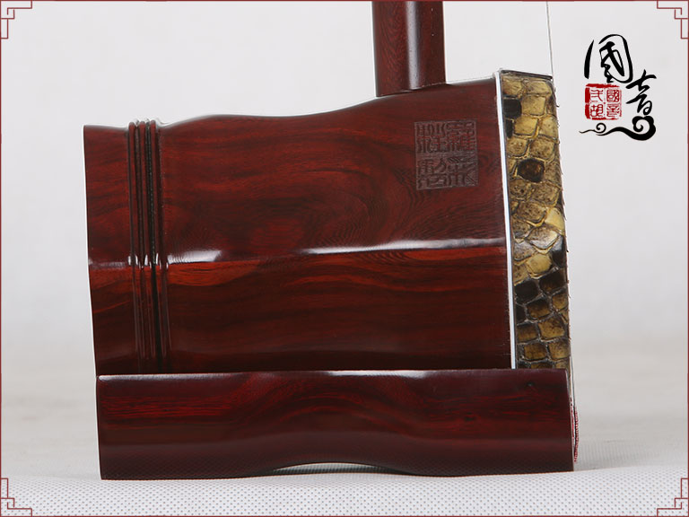 产品说明紫檀的材质致密坚硬,鬃眼细密,所制二胡发音亮丽。国音紫檀双声道精品二胡,获得国家专利,经鉴定琴筒内的声音经过两次循环迂回传出,改变传统二胡直接发声的方式,因此琴皮与琴身共振协调,上下把位通透,内外弦平衡,无狼音、杂音,低音浑厚浓郁,高音清晰明亮,共鸣增大,音量增大,音色浑厚、圆润、优美,穿透力大,立体感强,演奏手感好,南北风格兼容,极大提高二胡的音质和丰富了音色。