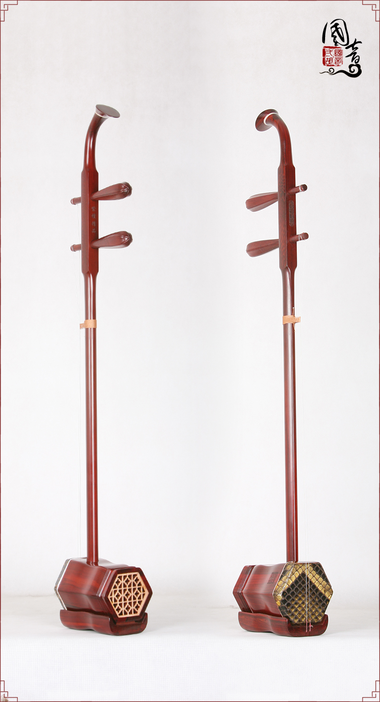 产品说明紫檀的材质致密坚硬,鬃眼细密,所制二胡发音亮丽。国音紫檀双声道精品二胡,获得国家专利,经鉴定琴筒内的声音经过两次循环迂回传出,改变传统二胡直接发声的方式,因此琴皮与琴身共振协调,上下把位通透,内外弦平衡,无狼音、杂音,低音浑厚浓郁,高音清晰明亮,共鸣增大,音量增大,音色浑厚、圆润、优美,穿透力大,立体感强,演奏手感好,南北风格兼容,极大提高二胡的音质和丰富了音色。