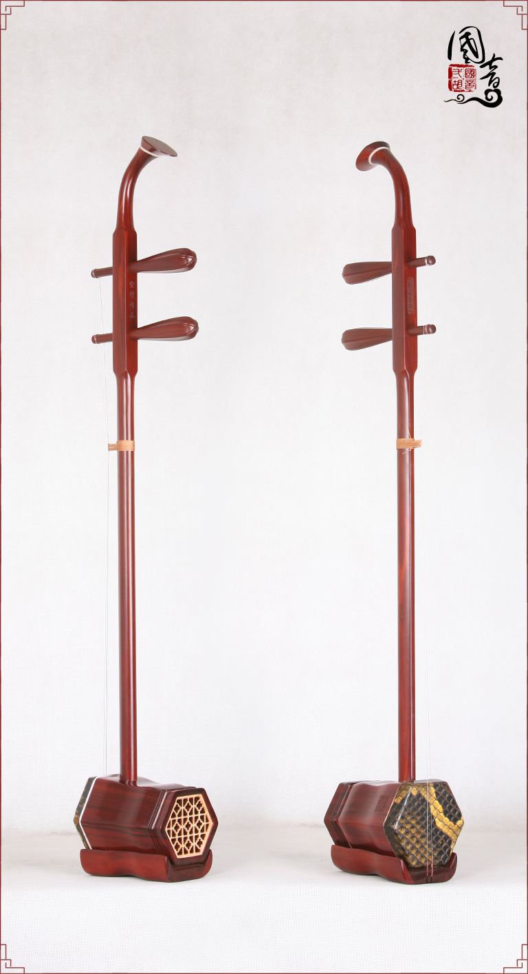 产品说明紫檀的材质致密坚硬,鬃眼细密,所制二胡发音亮丽。国音紫檀双声道精品二胡,获得国家专利,经鉴定琴筒内的声音经过两次循环迂回传出,改变传统二胡直接发声的方式,因此琴皮与琴身共振协调,上下把位通透,内外弦平衡,无狼音、杂音,低音浑厚浓郁,高音清晰明亮,共鸣增大,音量增大,音色浑厚、圆润、优美,穿透力大,立体感强,演奏手感好,南北风格兼容,极大提高二胡的音质和丰富了音色。