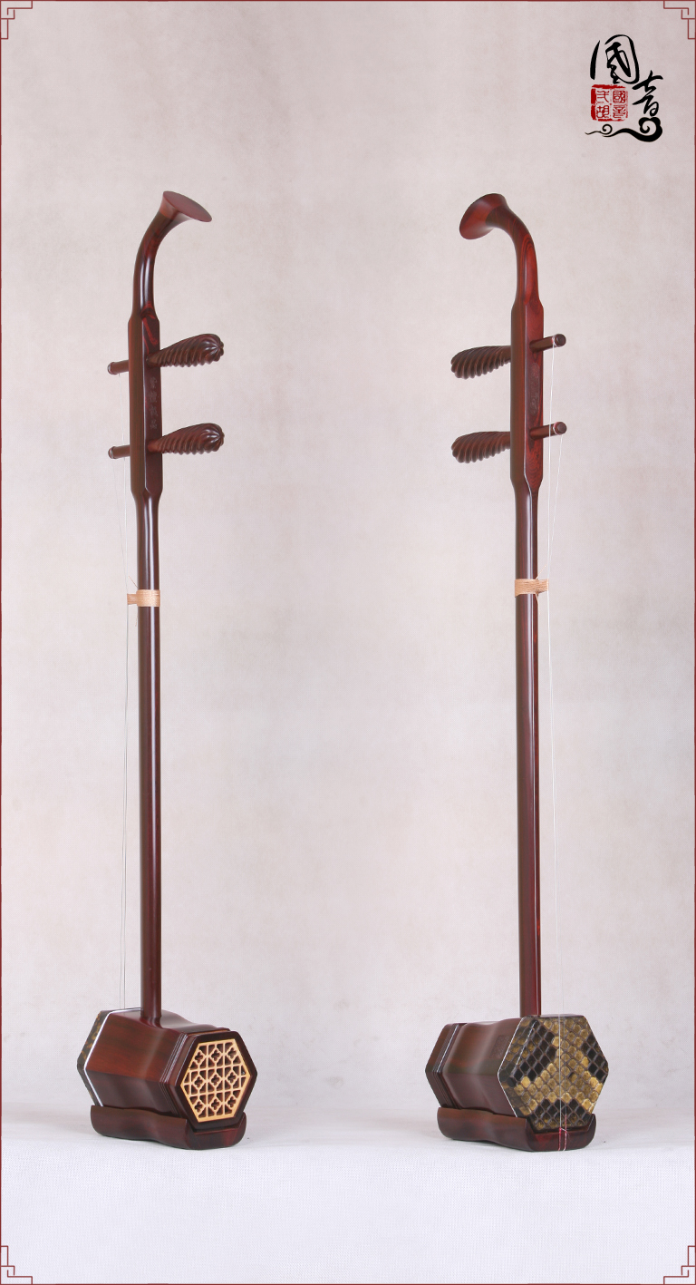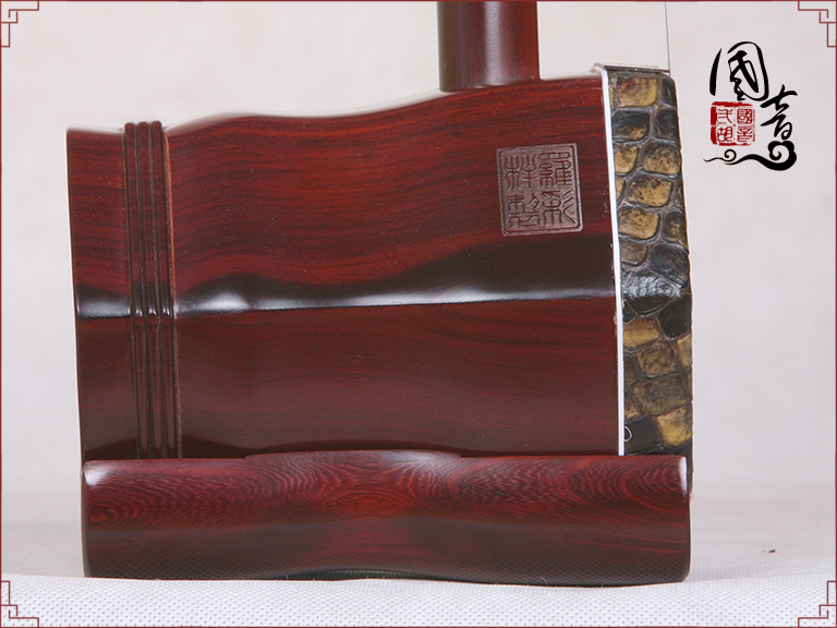 产品说明紫檀的材质致密坚硬,鬃眼细密,所制二胡发音亮丽。国音紫檀双声道精品二胡,获得国家专利,经鉴定琴筒内的声音经过两次循环迂回传出,改变传统二胡直接发声的方式,因此琴皮与琴身共振协调,上下把位通透,内外弦平衡,无狼音、杂音,低音浑厚浓郁,高音清晰明亮,共鸣增大,音量增大,音色浑厚、圆润、优美,穿透力大,立体感强,演奏手感好,南北风格兼容,极大提高二胡的音质和丰富了音色。