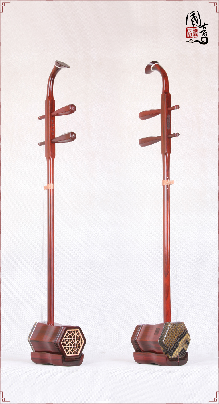 产品说明紫檀的材质致密坚硬,鬃眼细密,所制二胡发音亮丽。国音紫檀双声道精品二胡,获得国家专利,经鉴定琴筒内的声音经过两次循环迂回传出,改变传统二胡直接发声的方式,因此琴皮与琴身共振协调,上下把位通透,内外弦平衡,无狼音、杂音,低音浑厚浓郁,高音清晰明亮,共鸣增大,音量增大,音色浑厚、圆润、优美,穿透力大,立体感强,演奏手感好,南北风格兼容,极大提高二胡的音质和丰富了音色。