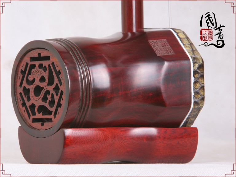 产品说明紫檀的材质致密坚硬,鬃眼细密,所制二胡发音亮丽。国音紫檀双声道精品二胡,经鉴定琴筒内的声音经过两次循环迂回传出,改变传统二胡直接发声的方式,因此琴皮与琴身共振协调,上下把位通透,内外弦平衡,无狼音、杂音,低音浑厚浓郁,高音清晰明亮,共鸣增大,音量增大,音色浑厚、圆润、优美,穿透力大,立体感强,演奏手感好,南北风格兼容,极大提高二胡的音质和丰富了音色。