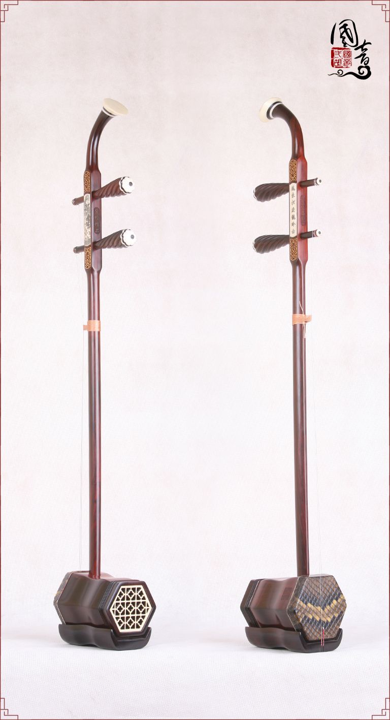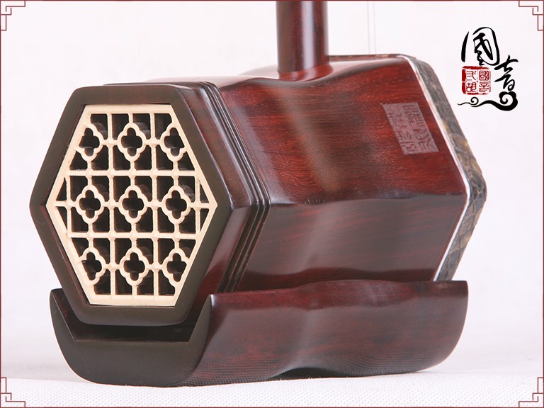 产品说明紫檀的材质致密坚硬,鬃眼细密,所制二胡发音亮丽。国音紫檀双声道精品二胡,经鉴定琴筒内的声音经过两次循环迂回传出,改变传统二胡直接发声的方式,因此琴皮与琴身共振协调,上下把位通透,内外弦平衡,无狼音、杂音,低音浑厚浓郁,高音清晰明亮,共鸣增大,音量增大,音色浑厚、圆润、优美,穿透力大,立体感强,演奏手感好,南北风格兼容,极大提高二胡的音质和丰富了音色。