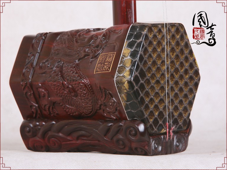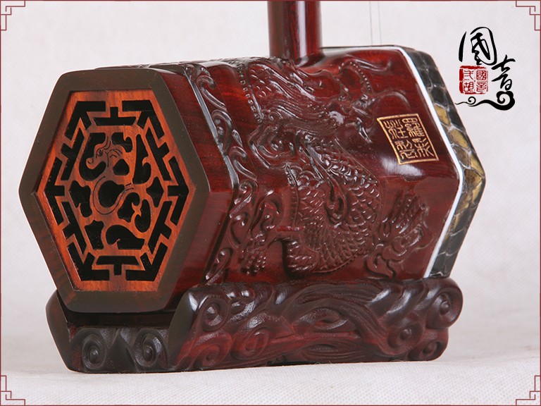 产品说明紫檀的材质致密坚硬,鬃眼细密,所制二胡发音亮丽。国音紫檀双声道精品二胡,经鉴定琴筒内的声音经过两次循环迂回传出,改变传统二胡直接发声的方式,因此琴皮与琴身共振协调,上下把位通透,内外弦平衡,无狼音、杂音,低音浑厚浓郁,高音清晰明亮,共鸣增大,音量增大,音色浑厚、圆润、优美,穿透力大,立体感强,演奏手感好,南北风格兼容,极大提高二胡的音质和丰富了音色。